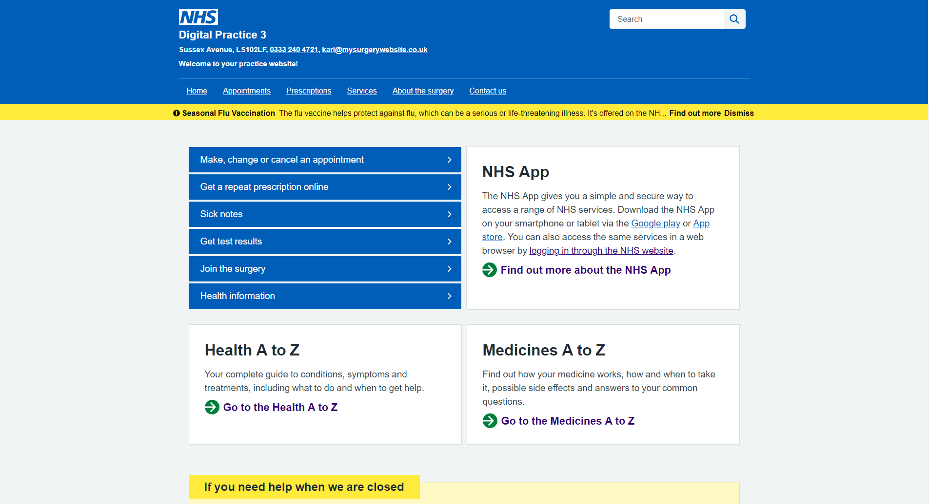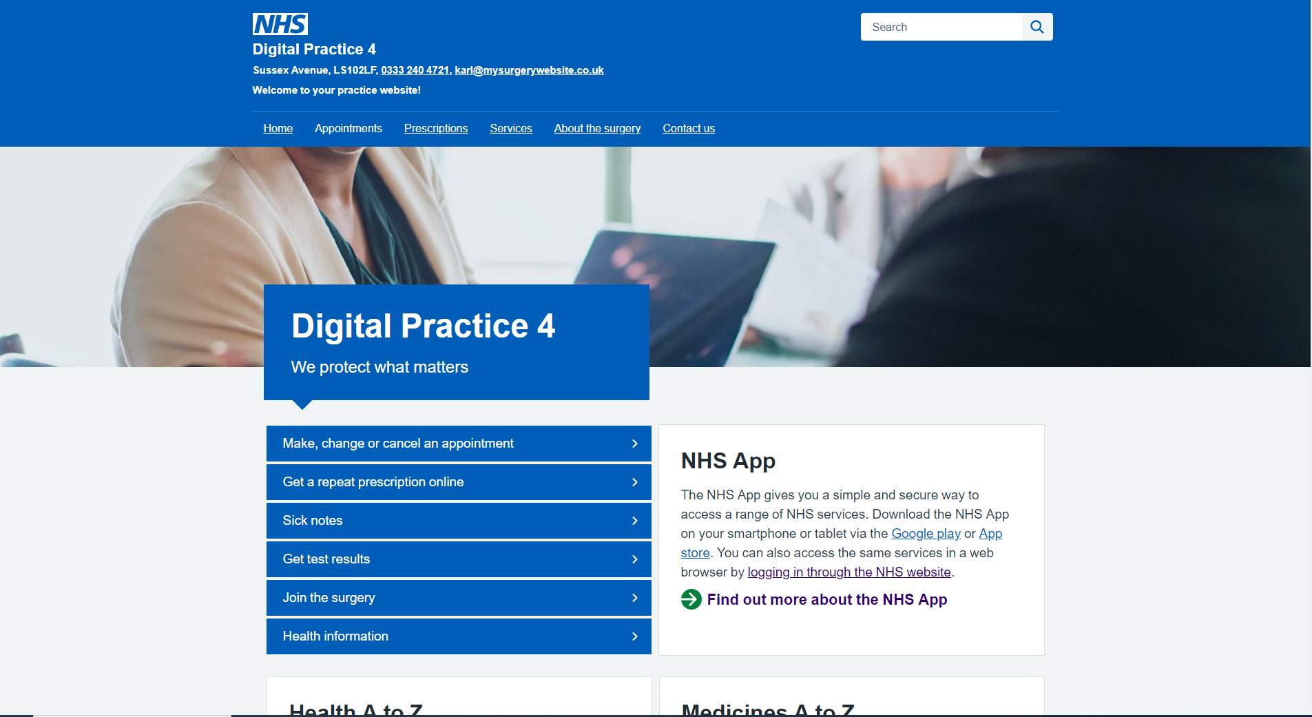 We have worked alongside the NHS and their Digital First team to ensure our templates meet the criteria set out in their "Creating a highly usable and accessible GP website for patients" guidance.